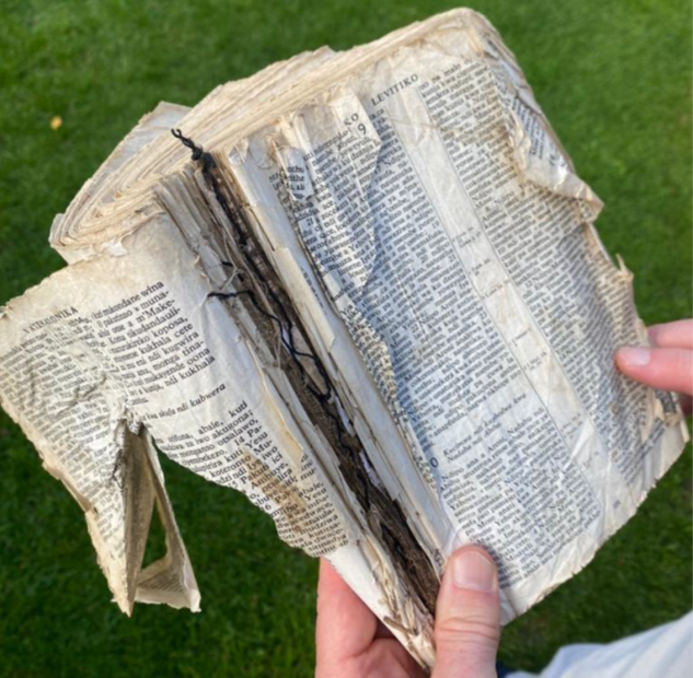 The need for Bibles is great, particularly in areas where poverty abounds. The Bible shown here is of a Malawian pastor who had been using this tattered Chichewa Bible until a new copy was given to him — his old copy started at Leviticus 9 and ended